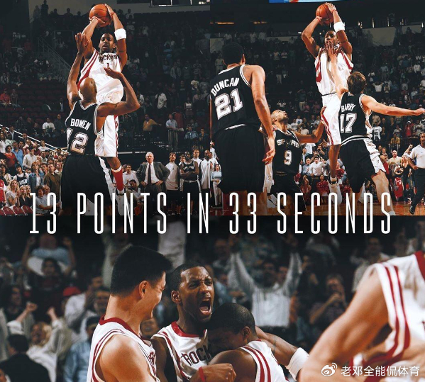 其次就是比赛看点不同,本来火箭队就是当时顶流球队,而他们对手是强大马刺队,那一年马刺还是卫冕冠军。球星对位也有看点,内线看姚明鏖战邓肯,外线看麦迪跟妖刀和帕克对轰,不管是内线还是外线,都有明星球员作为焦点。